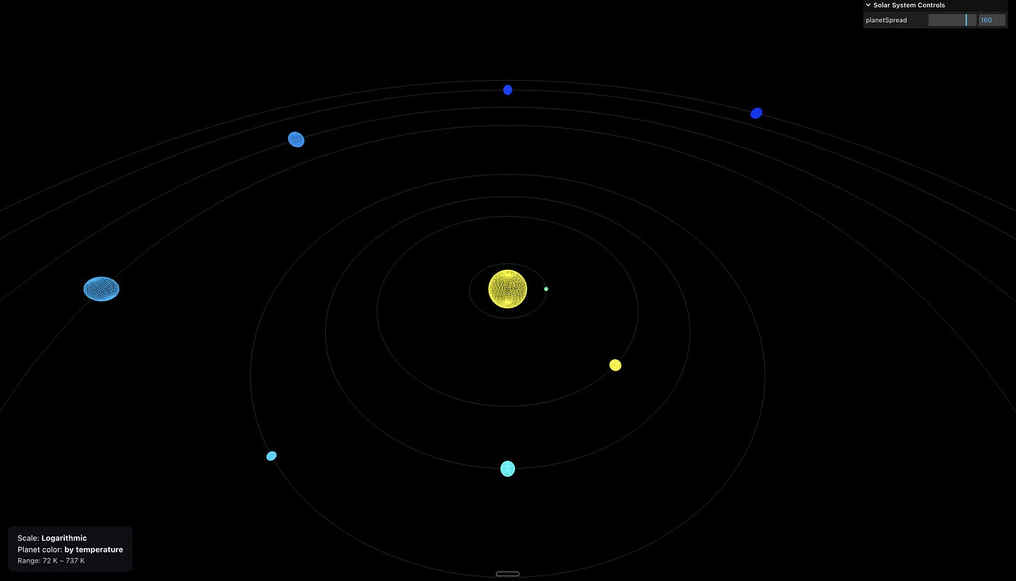 Initially, I set distances from the sun with a logarithmic approximation. But later I changed the distances to linear:
