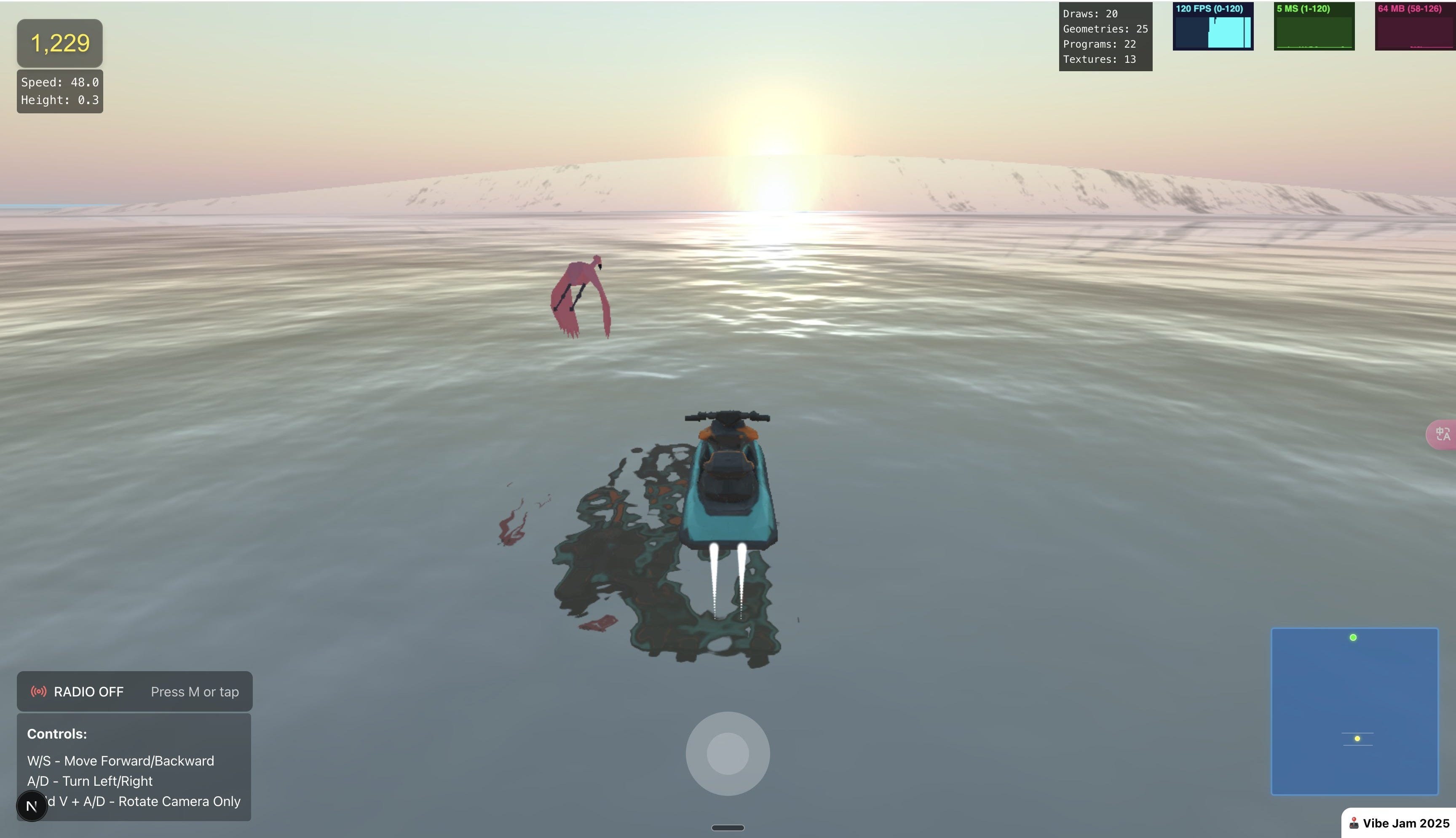 My first experience with it was VibeJam — a 5-day personal hackathon in vibe-coding a water scooter simulator (more like an arcade, to be fair).
