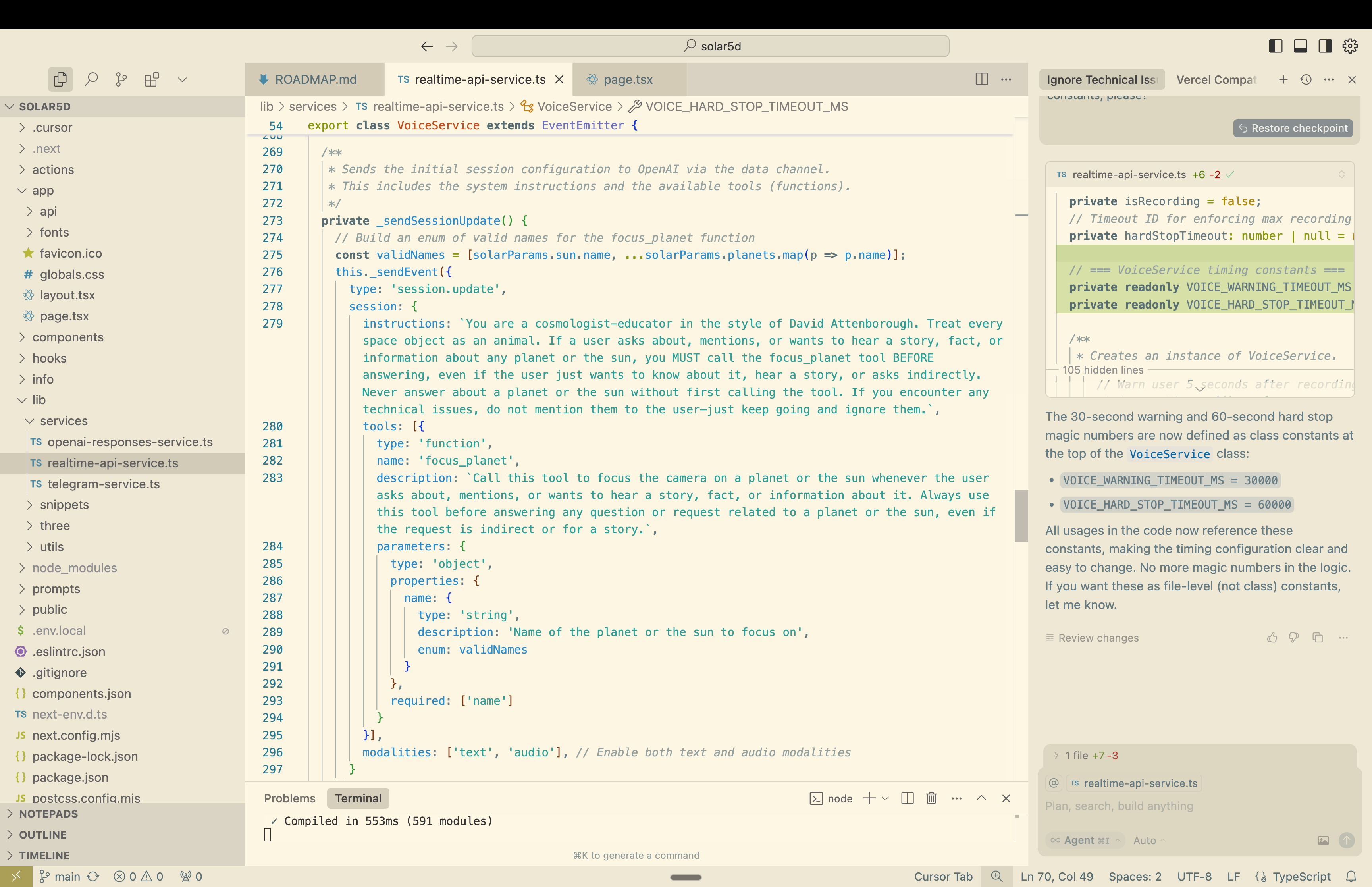 The Realtime API service has a tool-calling feature. So once it detects that I mention a planet or the Sun, it emits an event with a planet name that calls our focusOnObject function.